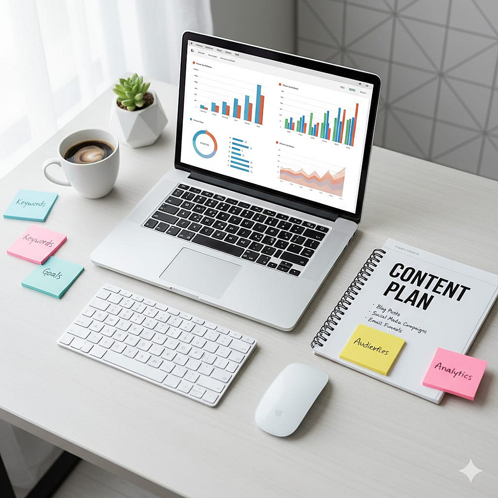 أقدم لك استراتيجية تسويق وخطة محتوى متكاملة تساعدك على تنظيم ونشر محتواك بشكل فعال.