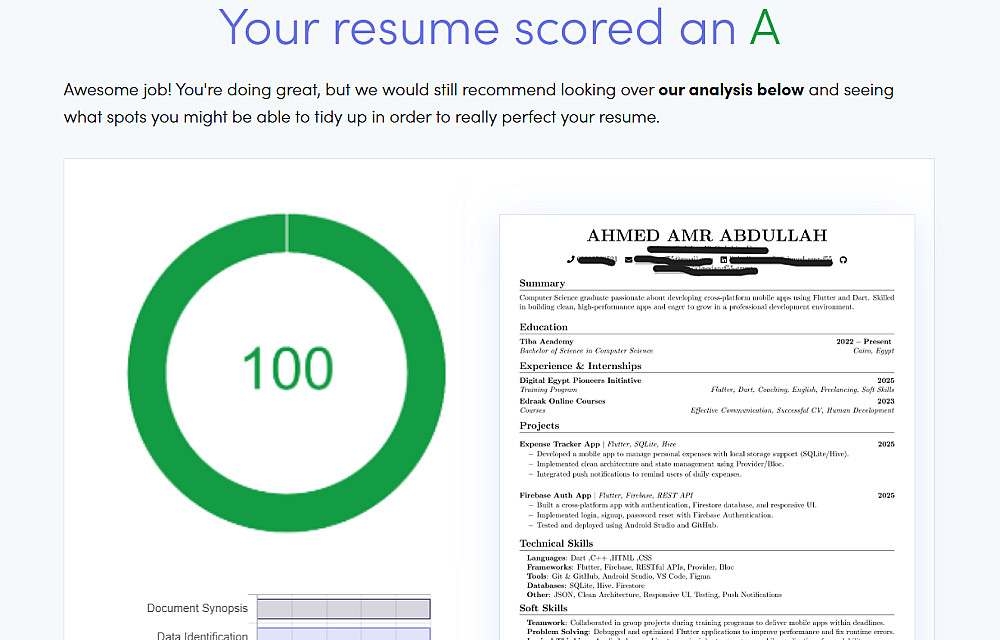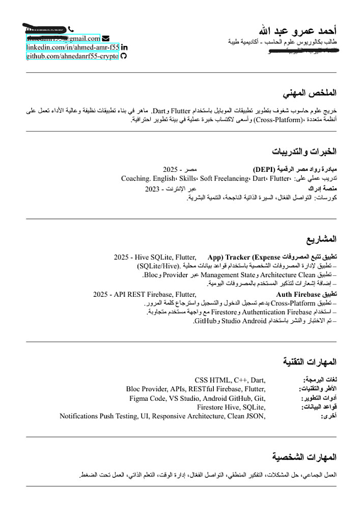الهدف: تحسين تنسيق المحتوى والكلمات المفتاحية لتتوافق مع متطلبات أنظمة ATS وتظهر سيرتك الذاتية بشكل احترافي أمام أصحاب العمل.