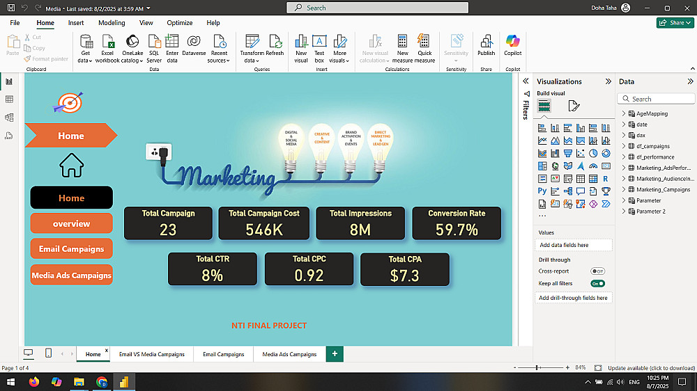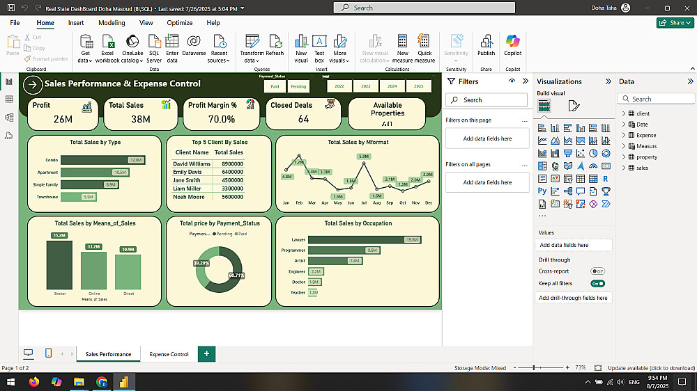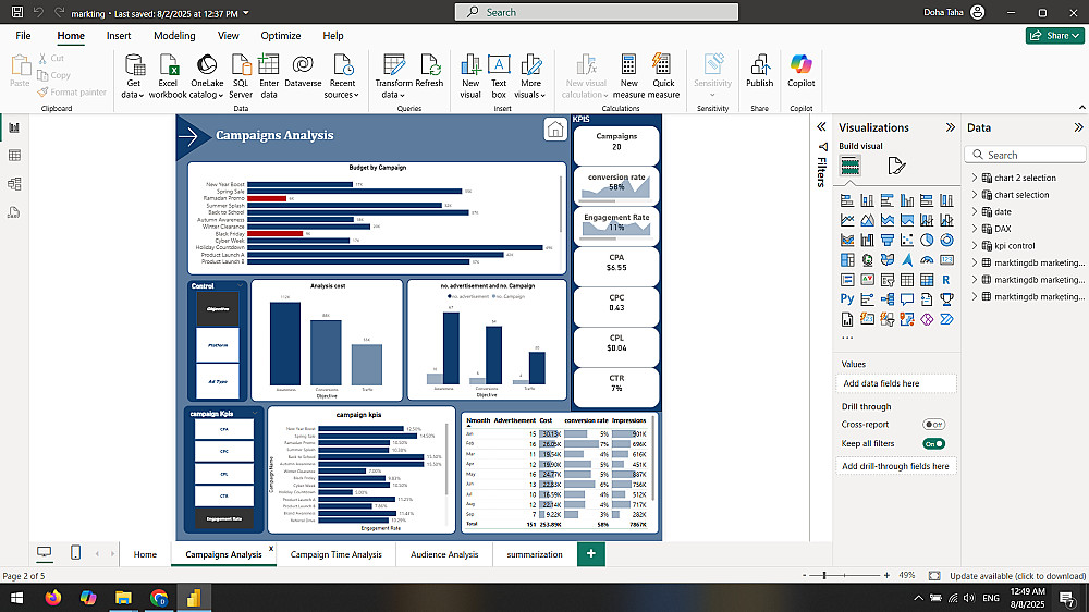 إنشاء تقرير أو لوحة تفاعلية واحدة تحتوي على من 5 إلى 7 رسوم بيانية (Charts) توضح النتائج بوضوح.