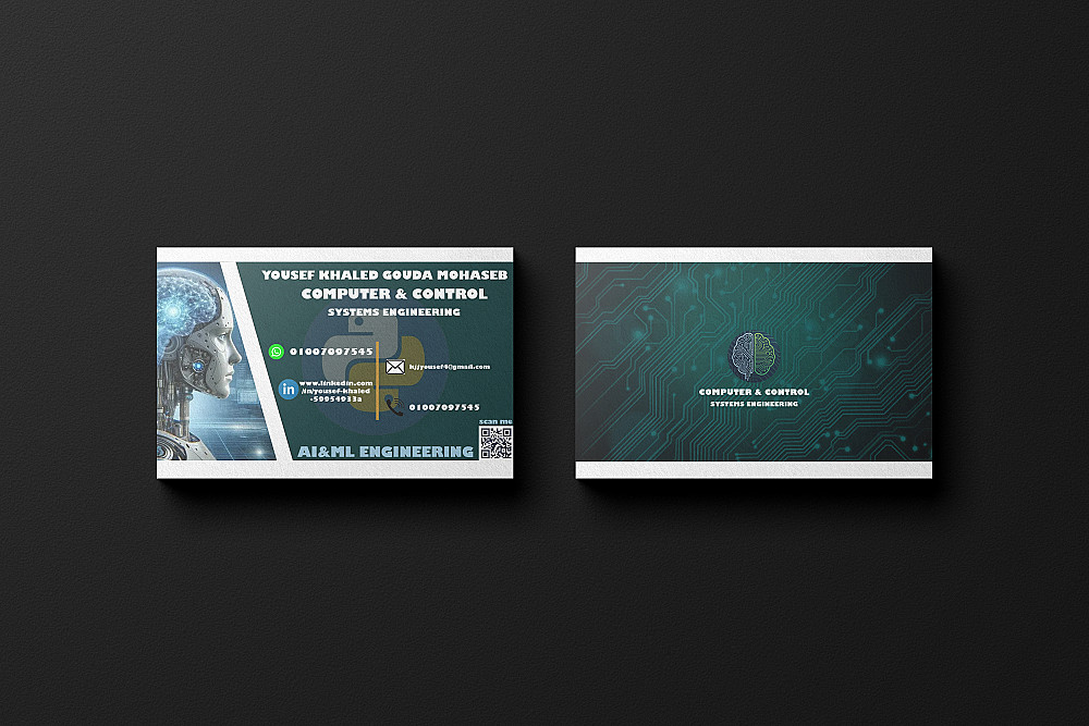 أنا مصمم جرافيك ومهندس كمبيوتر متخصص في تصميم الهوية البصرية والعلامات التجارية، أقدّم لك تصميم بزنس كارد احترافي يناسب مجالك ويبرز علامتك التجارية بأفضل شكل.