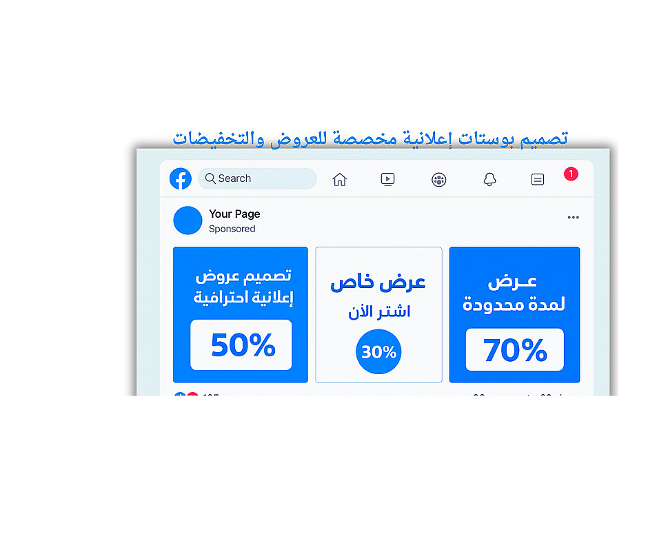 أنا أقدم لك خدمة تصميم بوستات إعلانية مخصصة للعروض والتخفيضات بشكل جذاب يلفت الانتباه ويزيد من تفاعل جمهورك على السوشيال ميديا مثل فيسبوك