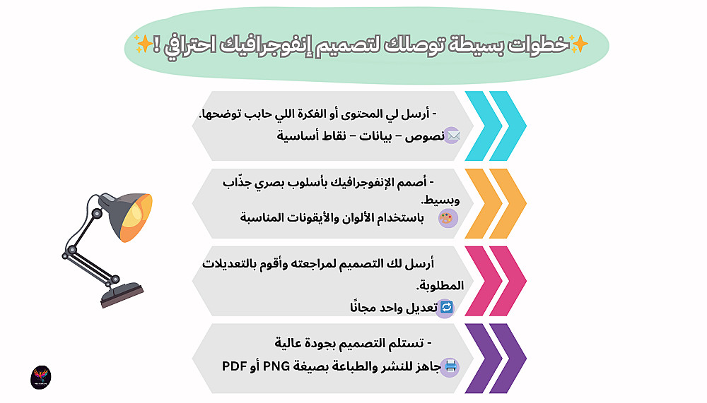 أقدّم لك خدمة تصميم إنفوجرافيك احترافي (عربي أو إنجليزي) يلخص المعلومات بشكل سهل وواضح لجمهورك.