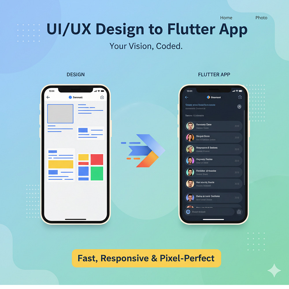 سأقوم بتحويل تصميم صفحتين من Figma إلى كود Flutter احترافي يعمل على جميع أحجام الشاشات سواء Android أو iOS، مع مطابقة كاملة للتصميم بنسبة 100% (Pixel Perfect) وتنفيذ تصميم متجاوب (Responsive Design) منظم وسهل التعديل.