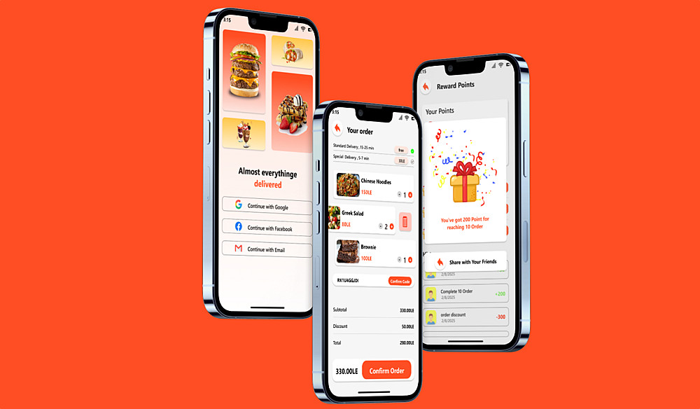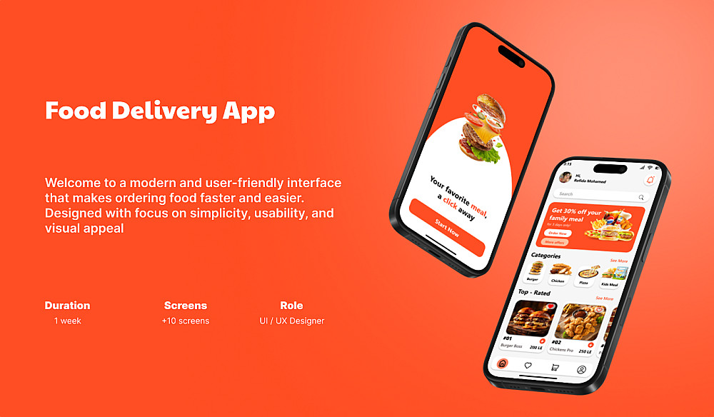 أنا هنا عشان أقدملك تصميم واجهة تطبيق توصيل طعام يجمع بين الوضوح و الجمال والانسيابية