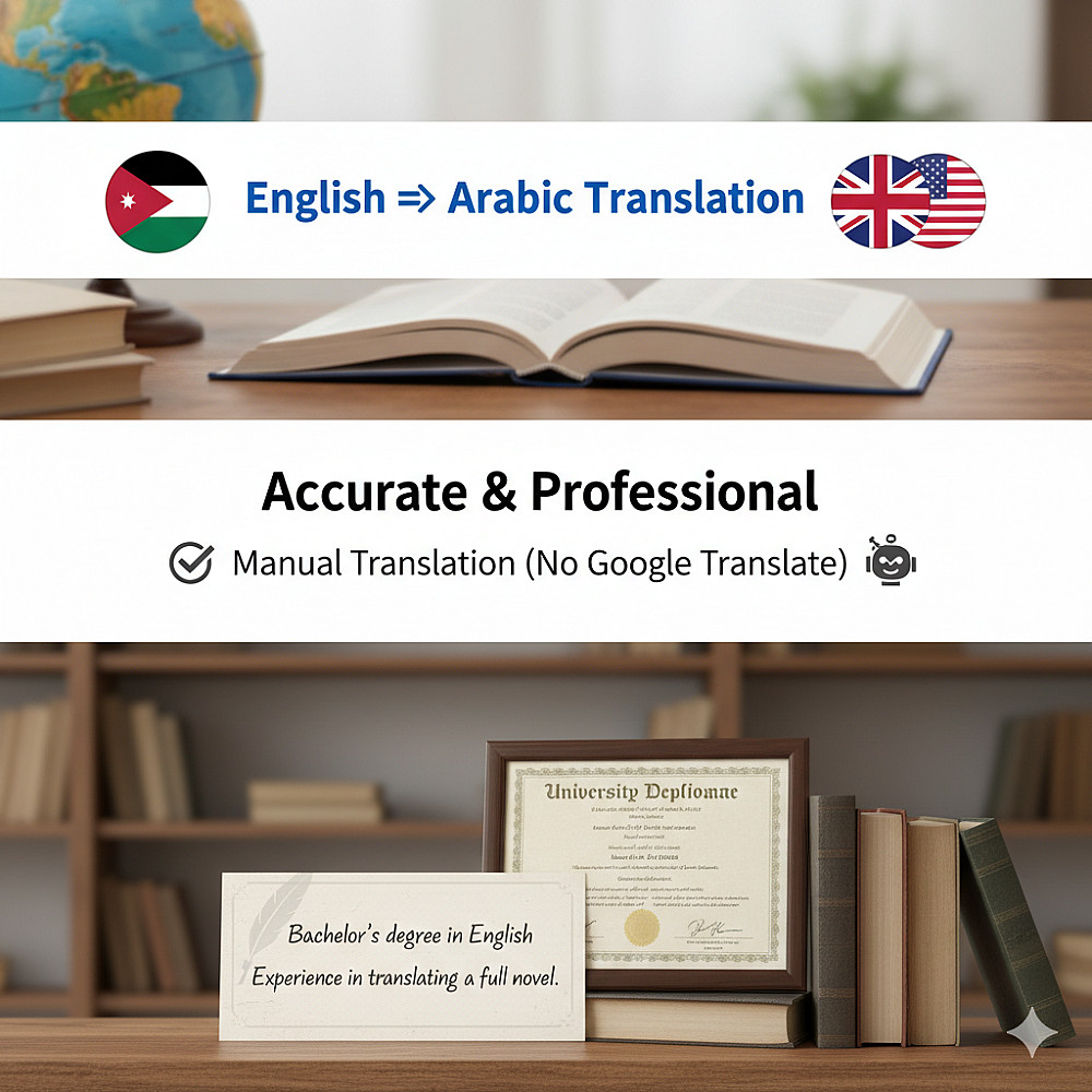 أقدم ترجمة دقيقة ومهنية للنصوص العامة والتعليمية والثقافية بين العربية والإنجليزية، مع تنسيق ممتاز للملفات حسب الطلب.