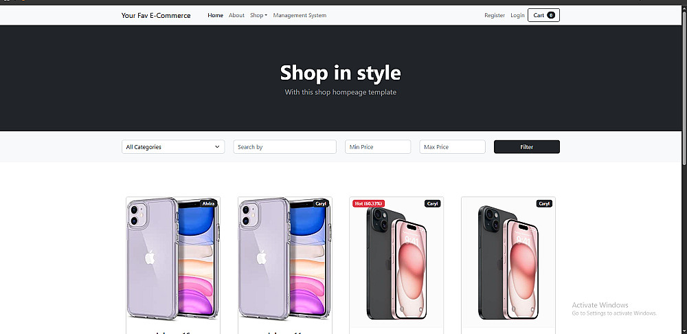 صفحة عرض المنتجات مع تصنيف حسب الفئة أو السعر.