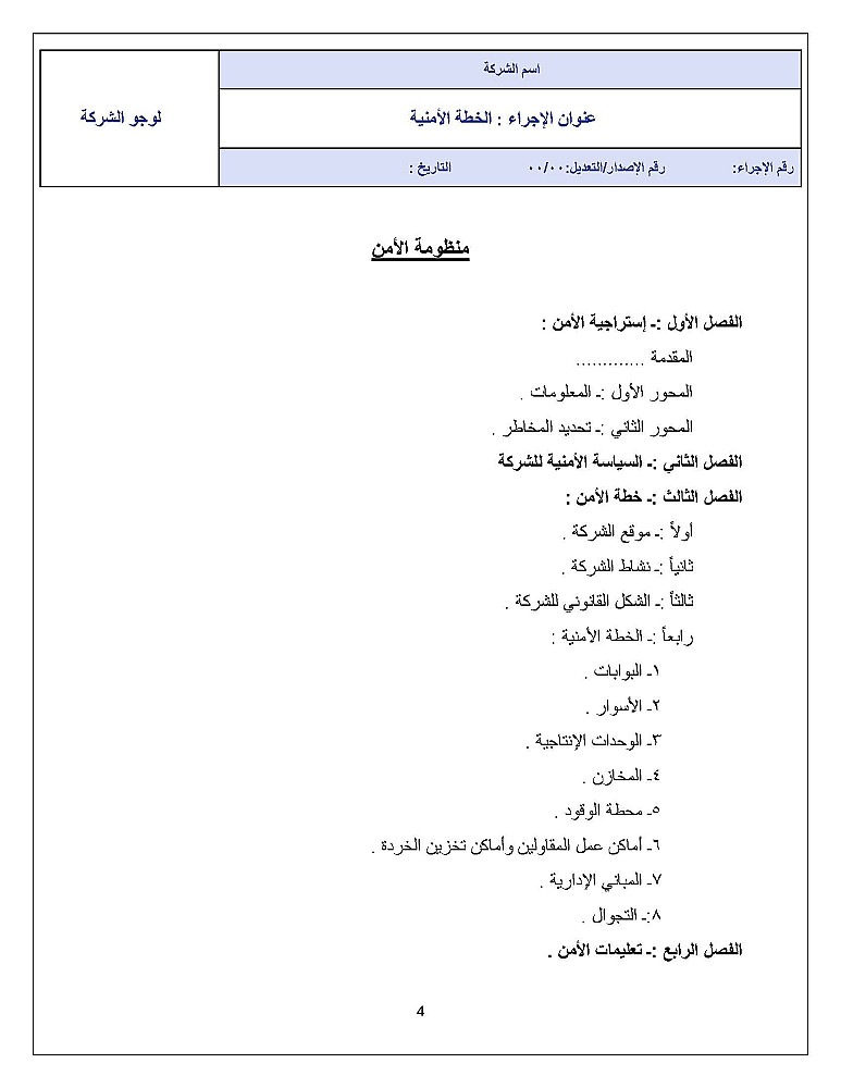 إعداد إجراء المنظومة الامنية