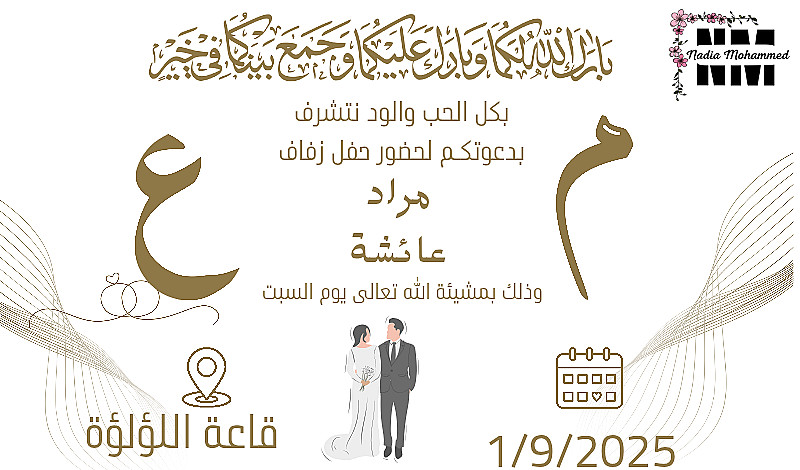 أقدم تصميم دعوات زفاف أنيقة وجذابة و دعوات قدوم مواليد وجميع المناسبات بصيغة PNG