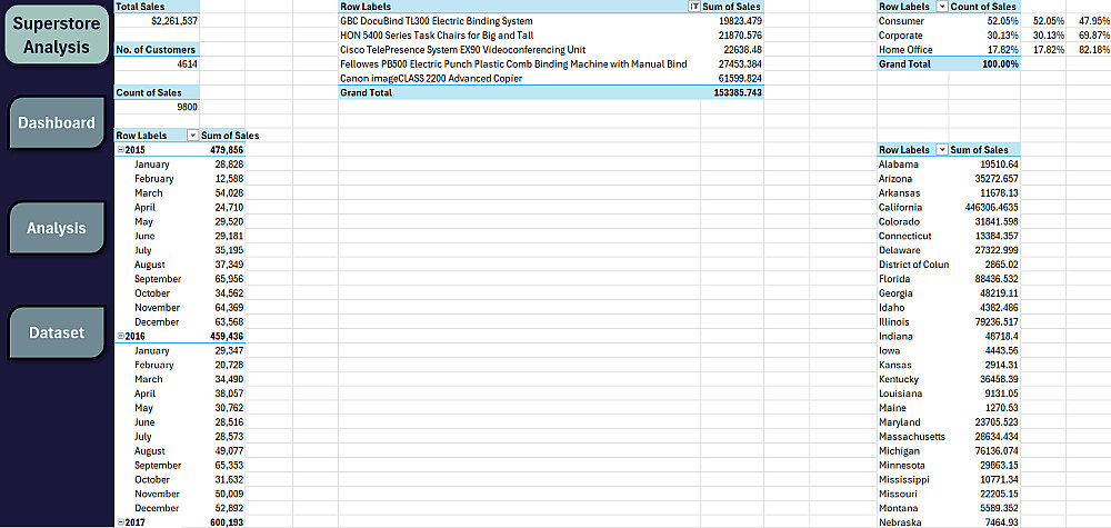 - تحليل بسيط باستخدام جدول محوري واحد (Pivot Table) او اثنين كحد اقصي.