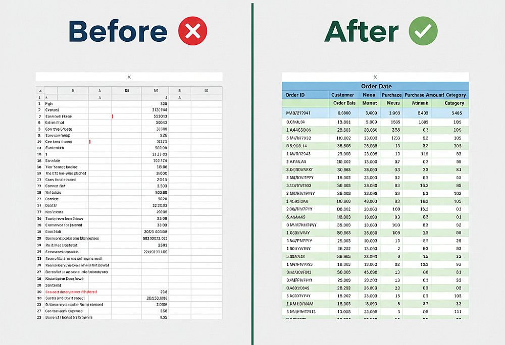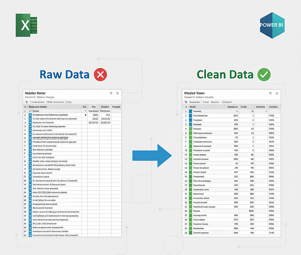 - توحيد الأعمدة والحقول لتصبح البيانات جاهزة للتحليل أو العرض في التقارير.