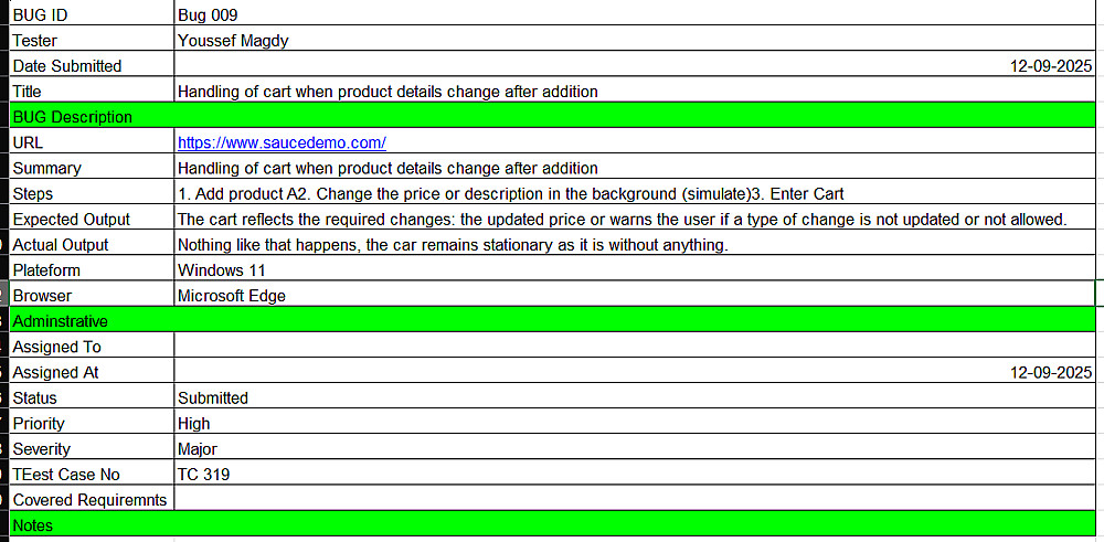 توثيق الأخطاء مع لقطات شاشة وخطوات إعادة الإنتاج.