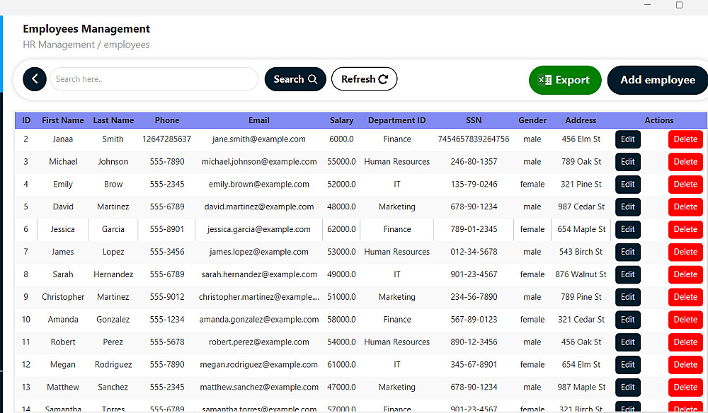 ✅ تنفيذ جميع العمليات الأساسية (إضافة – تعديل – حذف – بحث – عرض التفاصيل).
