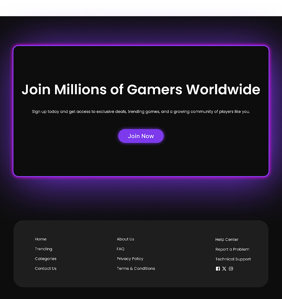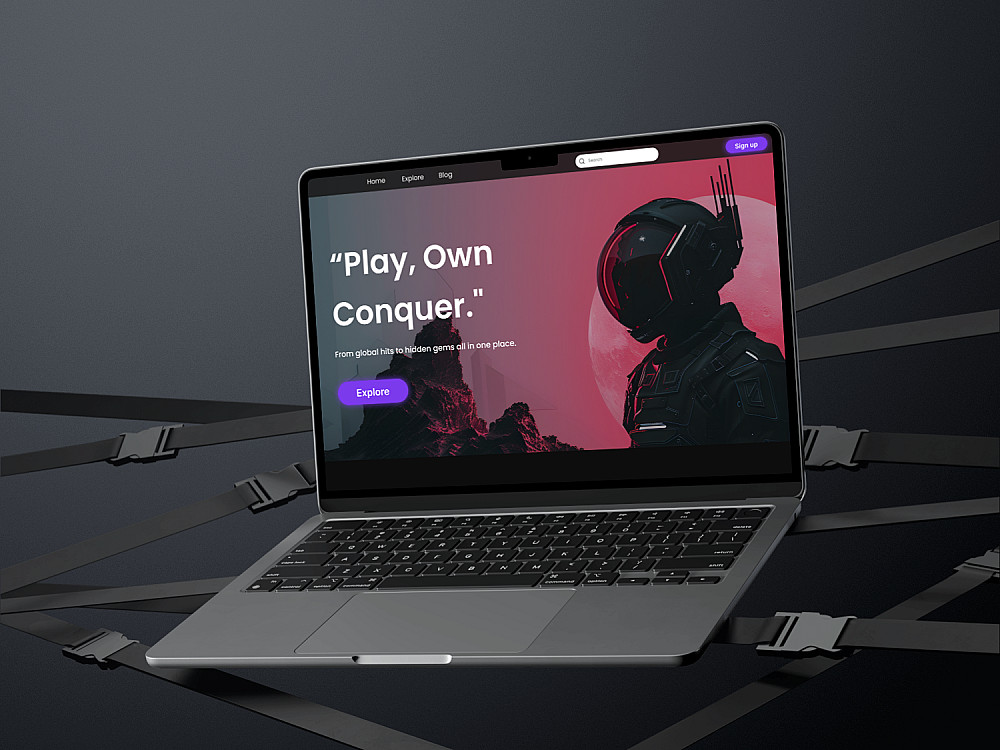 تصميم صفحة هبوط لموقع ألعاب أونلاين بأسلوب حديث وحيوي. تم التركيز على البساطة مع لمسات جرافيكية جذابة وألوان قوية مستوحاة من الطاقة والحماس في الألعاب. التصميم يشمل عناصر تفاعلية تضيف تجربة مستخدم مميزة.
