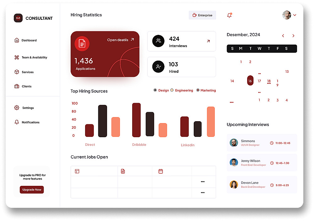 أقدم لك تصميمًا احترافيًا يعرض كل البيانات لعملائك بسهولة ووضوح. أعتمد على بحث UX معمق لضمان سهولة الاستخدام وتجربة مريحة، مما يحول بياناتك المعقدة إلى رؤى واضحة وقابلة للتنفيذ.