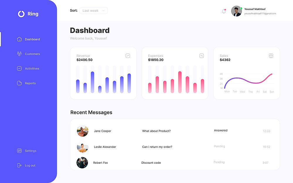 أهلاً بك! أنا يوسف، مصمم UI/UX متخصص في تصميم لوحات التحكم الاحترافية (Dashboards).