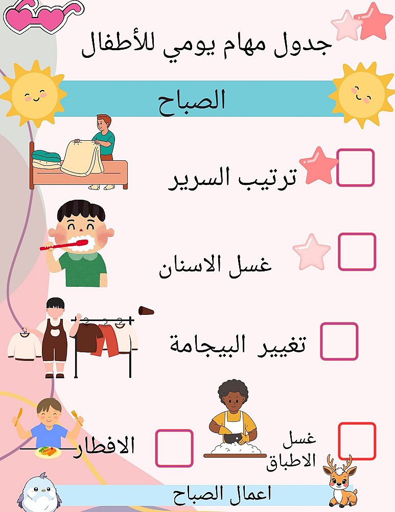 يساعد الطفل على التنظيم والتحفيز اليومي