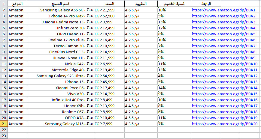 أنا أقدّم لك خدمة استخراج البيانات (Web Scraping) باستخدام Python، مع إمكانية تصدير النتائج بأي صيغة تختارها: