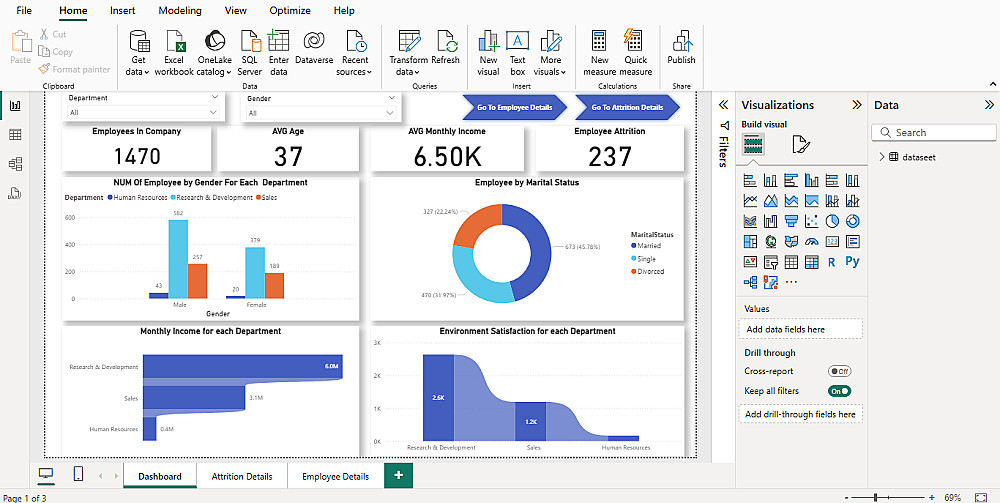 تقرير بصري مكون من 3 صفحات Dashboard تغطي الجوانب الأساسية مثل:
