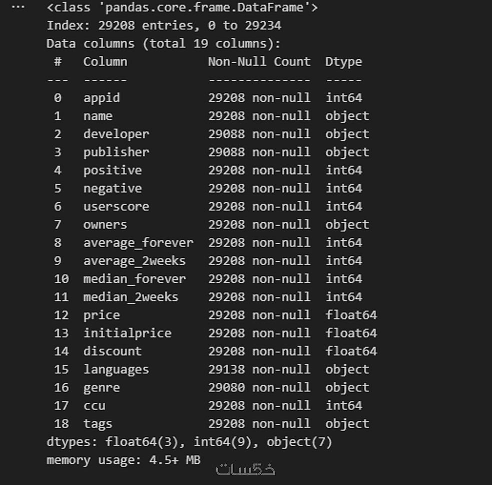 تحليل البيانات ومعالجتها تتكون من10 أعمدة و5000 صف.