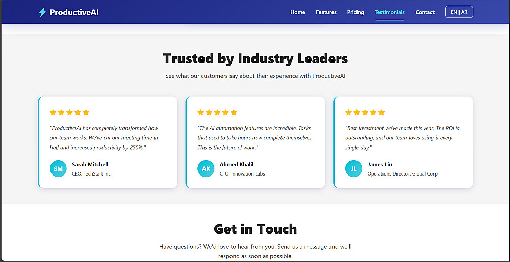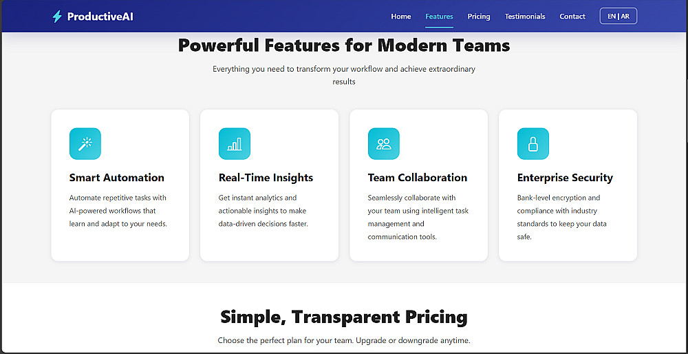 الصفحة ستكون بسيطة، أنيقة وسريعة التحميل، مع أقسام أساسية تساعدك على جذب العملاء وتحويل الزوار إلى مشترين.
