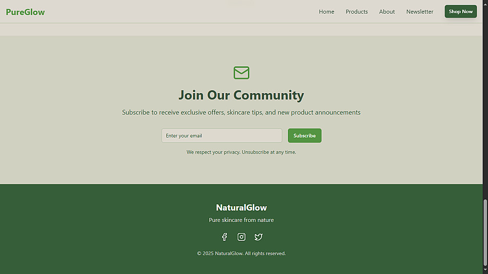 نموذج اشتراك Newsletter للتفاعل مع العملاء.