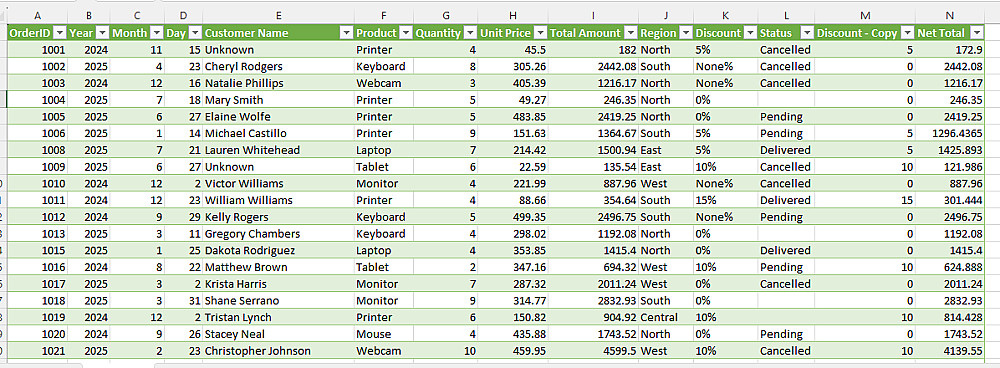 تنظيف ومعالجة البيانات باستخدام excel