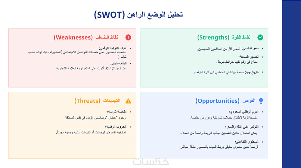 تحليل السوق (Market Research) دراسة الفئة المستهدفة، احتياجات العملاء، وتحديد فرص النمو.