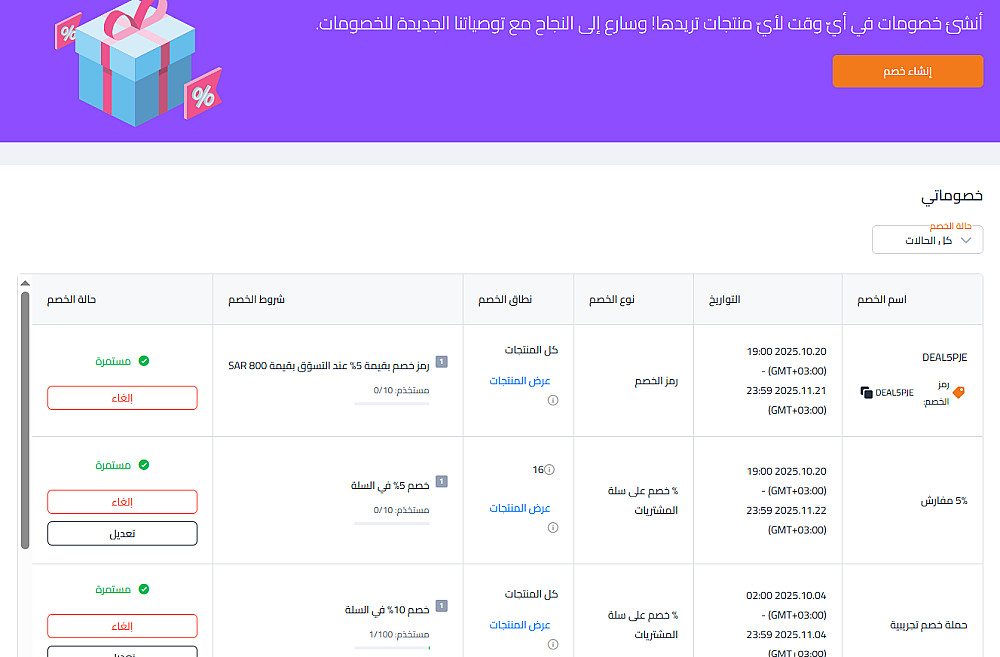 7-اطلاق عروض وكوبونات وحملات ل(5منتجات)