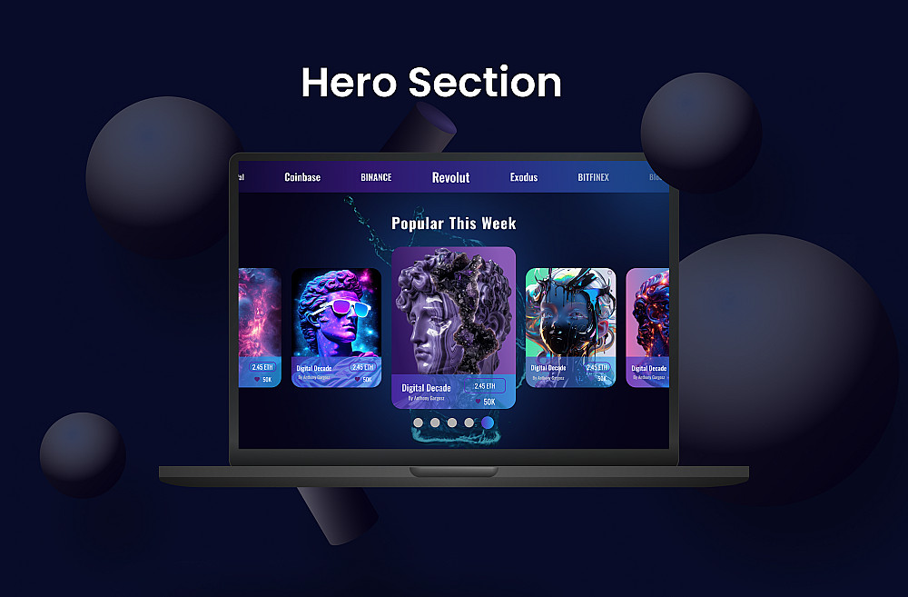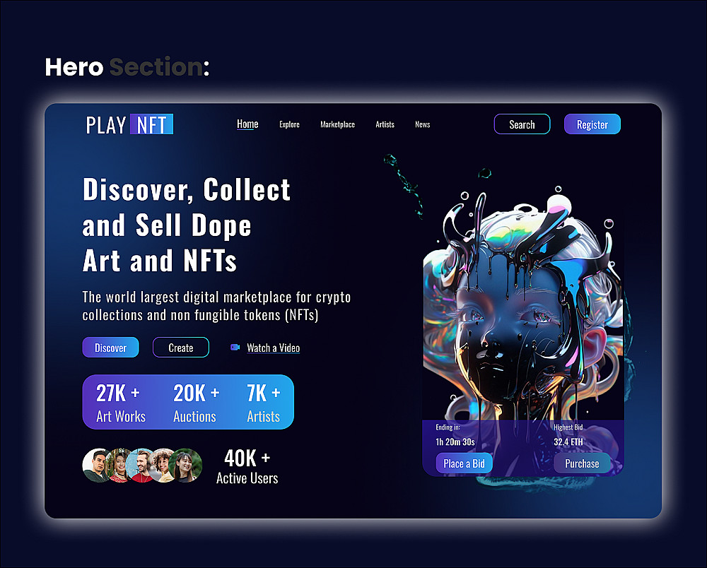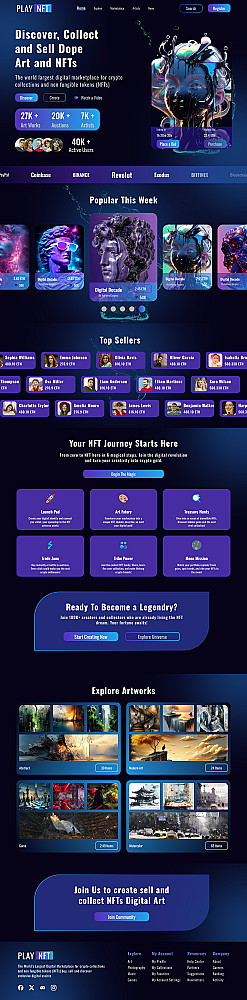 الصورة المرفقة هي Landing Page لمشروع PLAY NFT — وهذا نموذج على جودة التصميم والاهتمام بالتفاصيل التي في مشروعك.