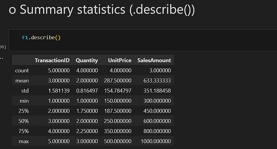 -تنفيذ إحصاءات وصفية (Descriptive Statistics) لفهم الاتجاهات العامة.