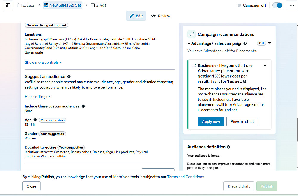 * يتم إطلاق الحملة من المدير الإعلاني الخاص بالعميل من خلال إضافتي إلى الحساب الإعلانى الخاص به