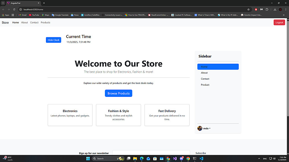 يشمل العمل تصميم واجهة المستخدم بـ Bootstrap، وإضافة صفحات مثل: