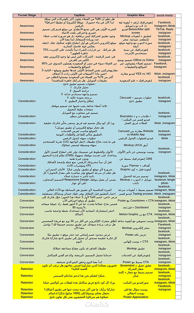 خطه تسويق اسبوعيه مع محتوي كامل جاهزه للنشر علي هواقع التواصل الاجتماعي