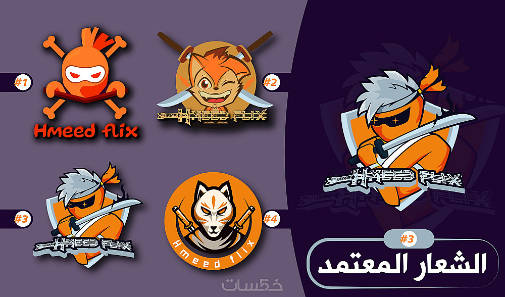 + 3 نماذج للشعار, كل نموذج بفكرة ابداعية مختلفة.
