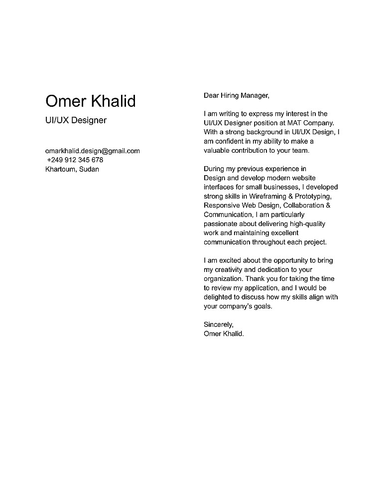 أنا أقدّم لك Cover Letter احترافي مكتوب بعناية ومتوافق مع نظام ATS (Applicant Tracking System) لضمان مرورك من فلاتر التوظيف الإلكترونية بسهولة.