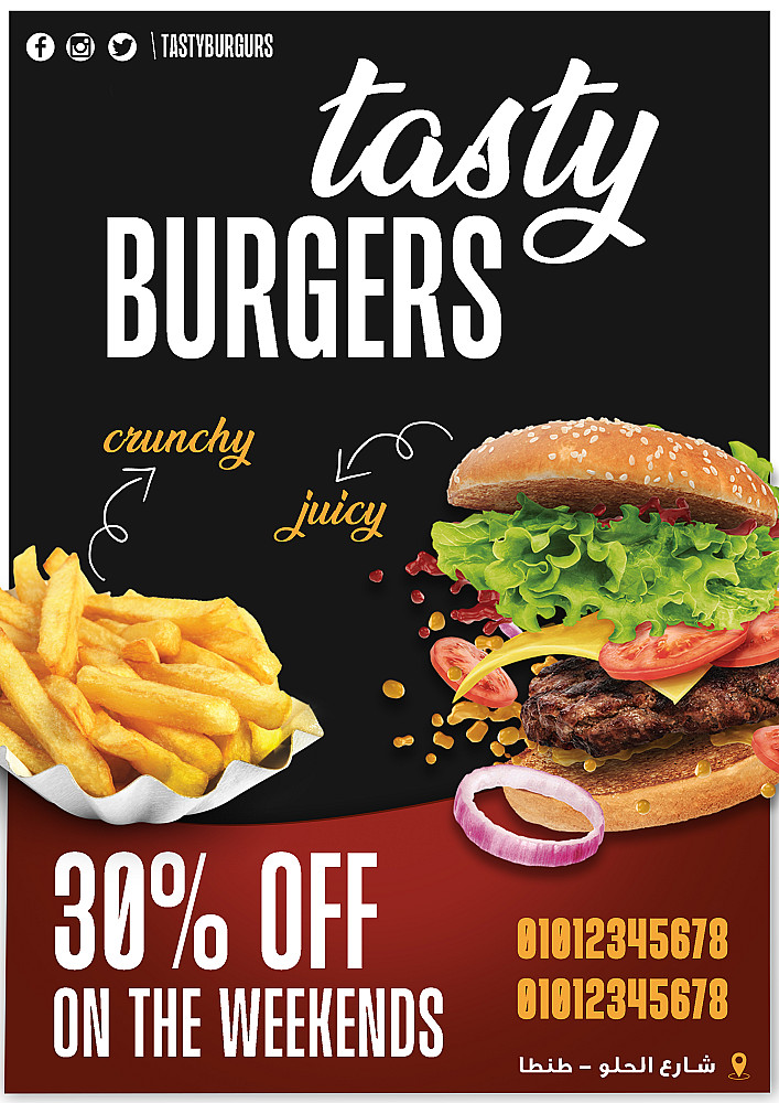 أنا منة، مصممة جرافيك بخبرة في تصميم الفلايرات الدعائية والإعلانية بجميع أنواعها (إيفنت – منتج – عرض خاص – مطعم – شركة – عيادة...).