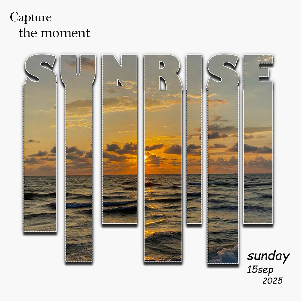 إمكانية دمج النصوص مع الصور بأسلوب فني (مثل تصميم SUNRISE).