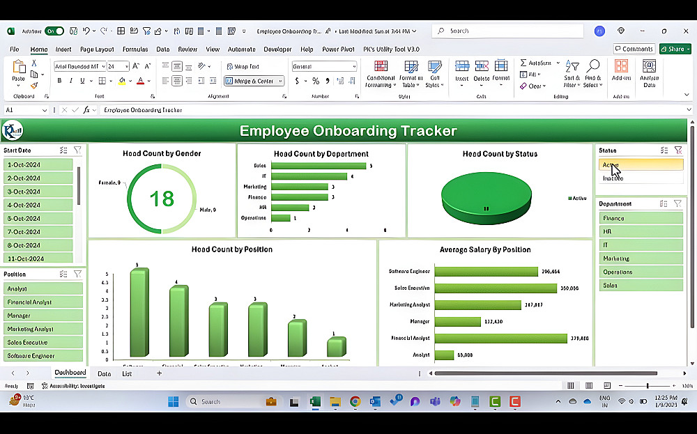 تصميم Employee Onboarding Tracker Dashboard احترافي باستخدام Excel لوحة متابعة متكاملة لموظفيك الجدد، تساعدك على تتبع عم