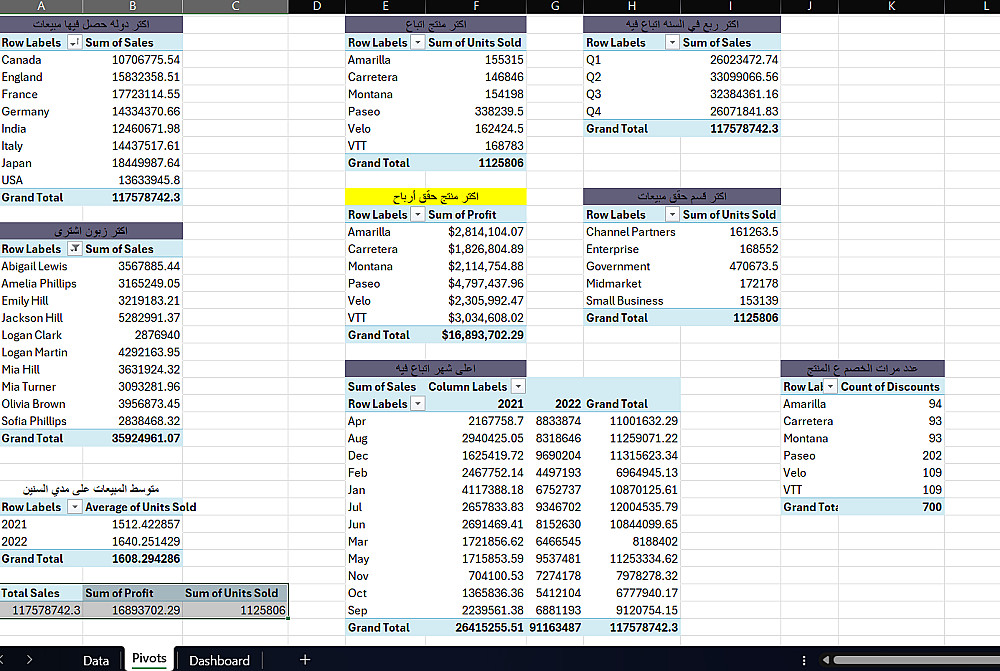أقدّم لك تصميم داشبورد احترافي باستخدام Excel يعرض بياناتك بشكل ذكي وتفاعلي، ويساعدك على متابعة مؤشرات الأداء وتحليل النتائج بدقة، لتتمكن من اتخاذ قرارات استراتيجية مبنية على معلومات دقيقة وواضحة