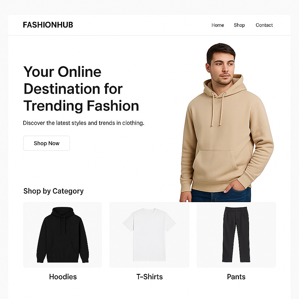 سأقوم بتصميم موقع متكامل لبيع الملابس (هوديز، تيشيرتات، بناطيل وغيرها) بتصميم عصري وسهل الاستخدام يعكس هوية مشروعك ويزيد مبيعاتك.