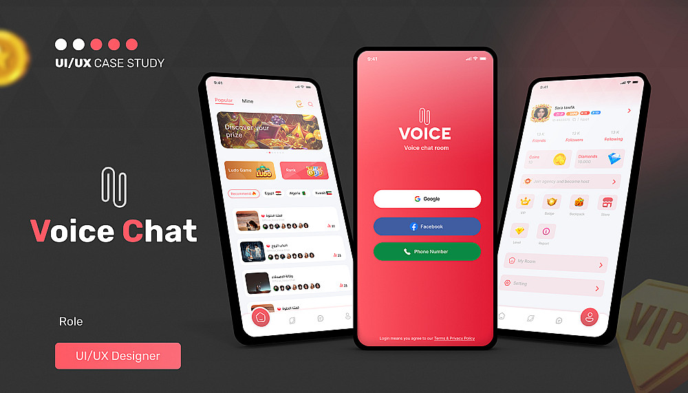 تصميم واجهة تطبيق دردشة صوتية احترافية بتجربة مستخدم عصرية