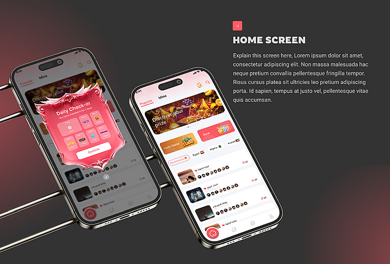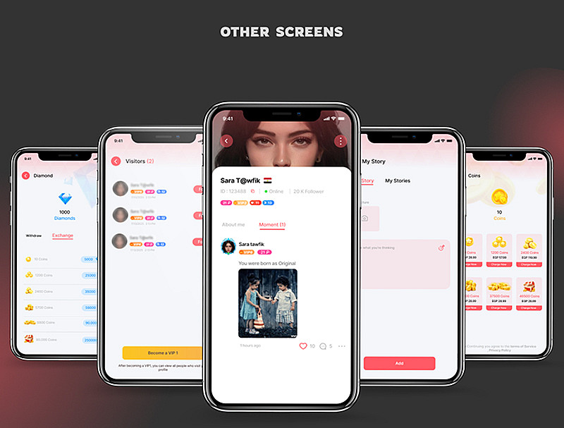 سأقوم بتصميم واجهة تطبيق دردشة صوتية (Voice Chat App) عصرية وسهلة الاستخدام بتجربة مستخدم مميزة تساعد المستخدمين على التفاعل بسلاسة داخل الغرف الصوتية وكل صفحه تكون ب 5 دولار.