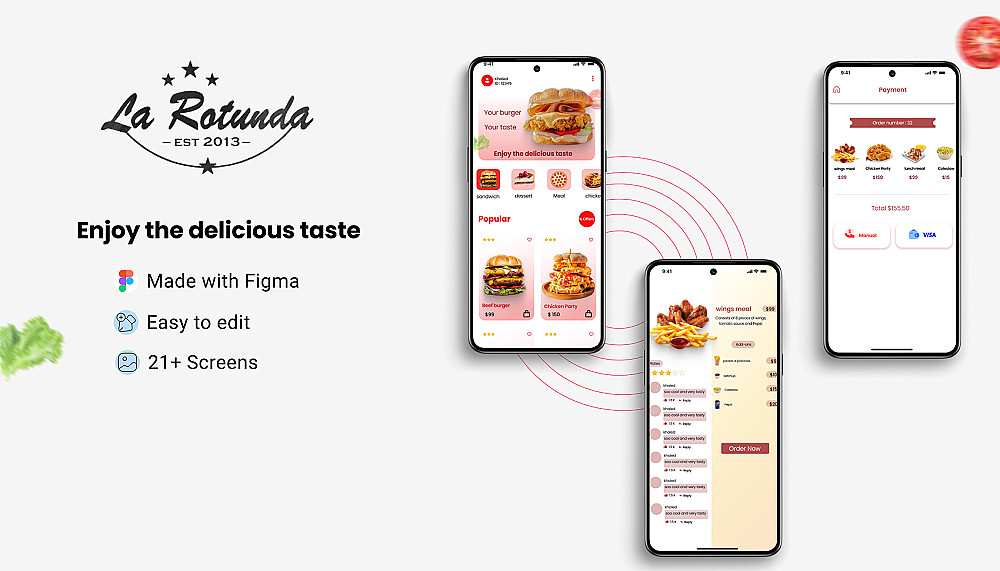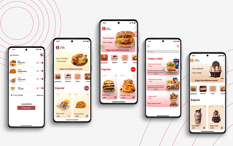 تصميم واجهة تطبيق مطعم لطلب الطعام والتوصيل بتجربة مستخدم احترافية