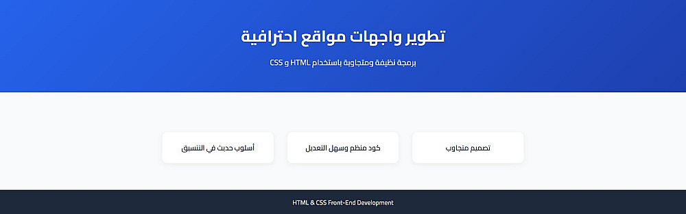 أقدّم خدمة تطوير واجهات المواقع (Front-End) باستخدام HTML وCSS لتصميم صفحة ويب متجاوبة واحترافية تعمل بسلاسة على جميع الأجهزة.