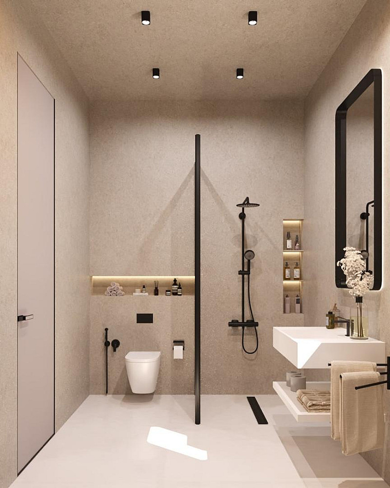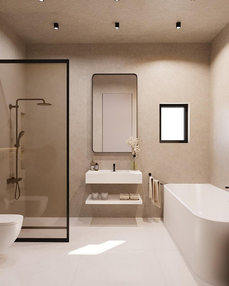 تصميم داخلي عصري للحمّامات توزيع عملي وتشطيب أنيق ( 20 دولار مقابل تصميم حمام )
