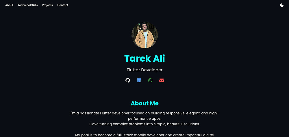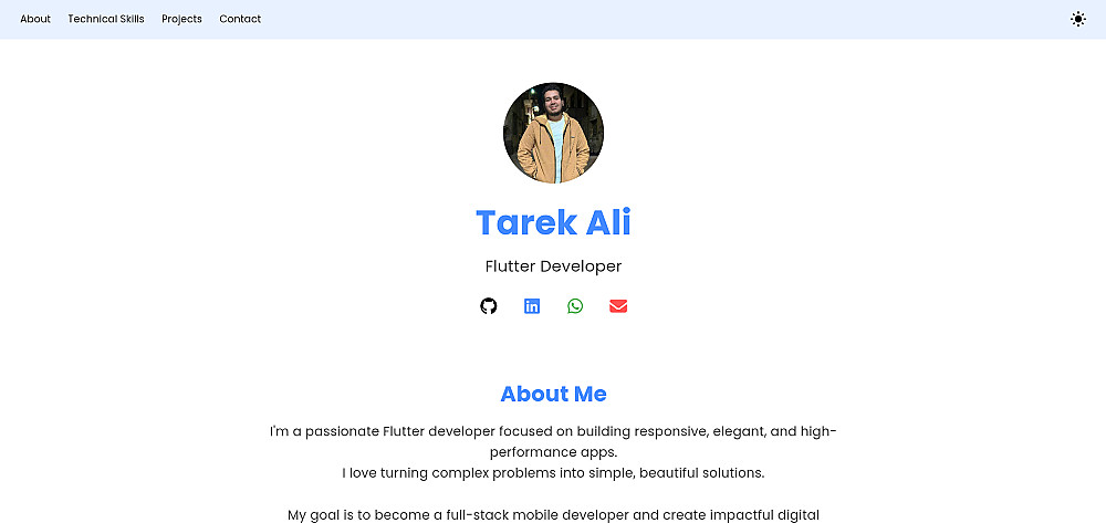 مرحباً بك! معك طارق احمد، Full-Stack Developer متخصص في تطوير تطبيقات الويب والجوال باستخدام Flutter وإدارة قواعد البيانات. أقدم لك خبرة واسعة في برمجة وتطوير المواقع والتطبيقات القائمة على فلاتر.