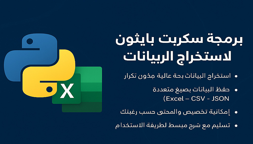 سأبرمج لك سكربت بايثون مخصص يقوم باستخراج البيانات المطلوبة بدقة عالية، وحفظها في ملف Excel أو CSV منسّق وجاهز للاستخدام.
