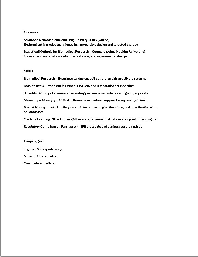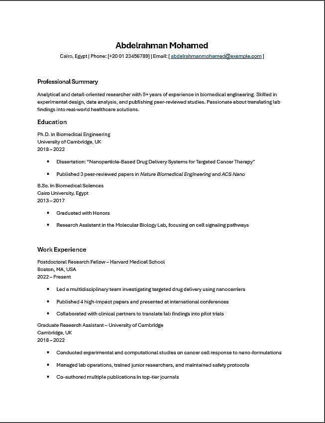 أقدم لك خدمة تصميم سيرة ذاتية احترافية باستخدام نظام ATS العالمي، المعتمد في الأوساط الأكاديمية والمهنية، لضمان عرض أنيق ومنظم لمهاراتك وخبراتك.