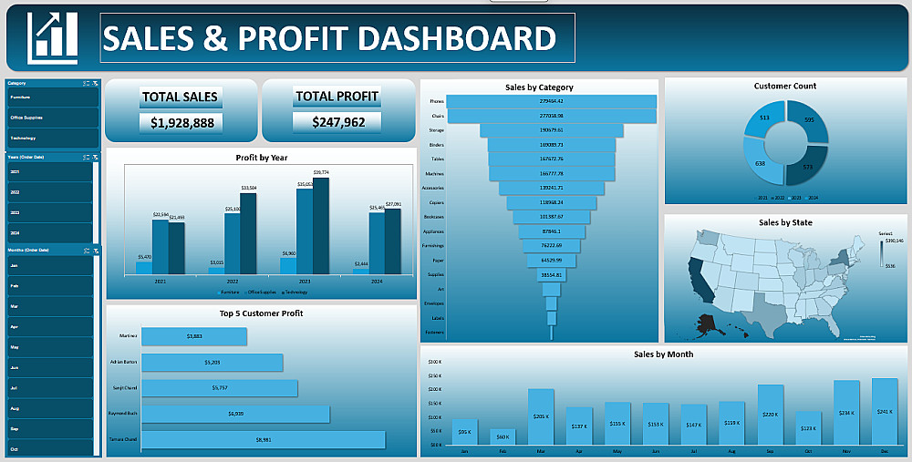 - Dashboard تفاعلية تعرض المبيعات والأرباح حسب المنتج والمنطقة والفترة الزمنية.
