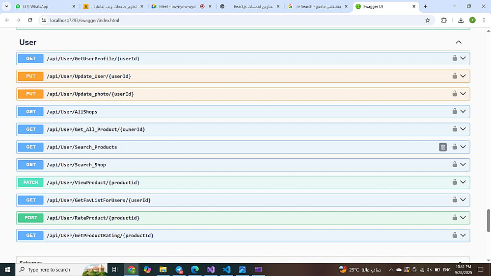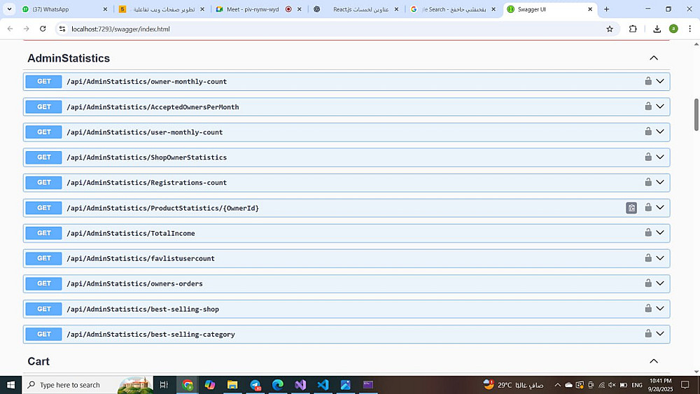 Swagger لتوثيق الـ API وتمكينك من اختبارها مباشرة من خلال واجهة تفاعلية.